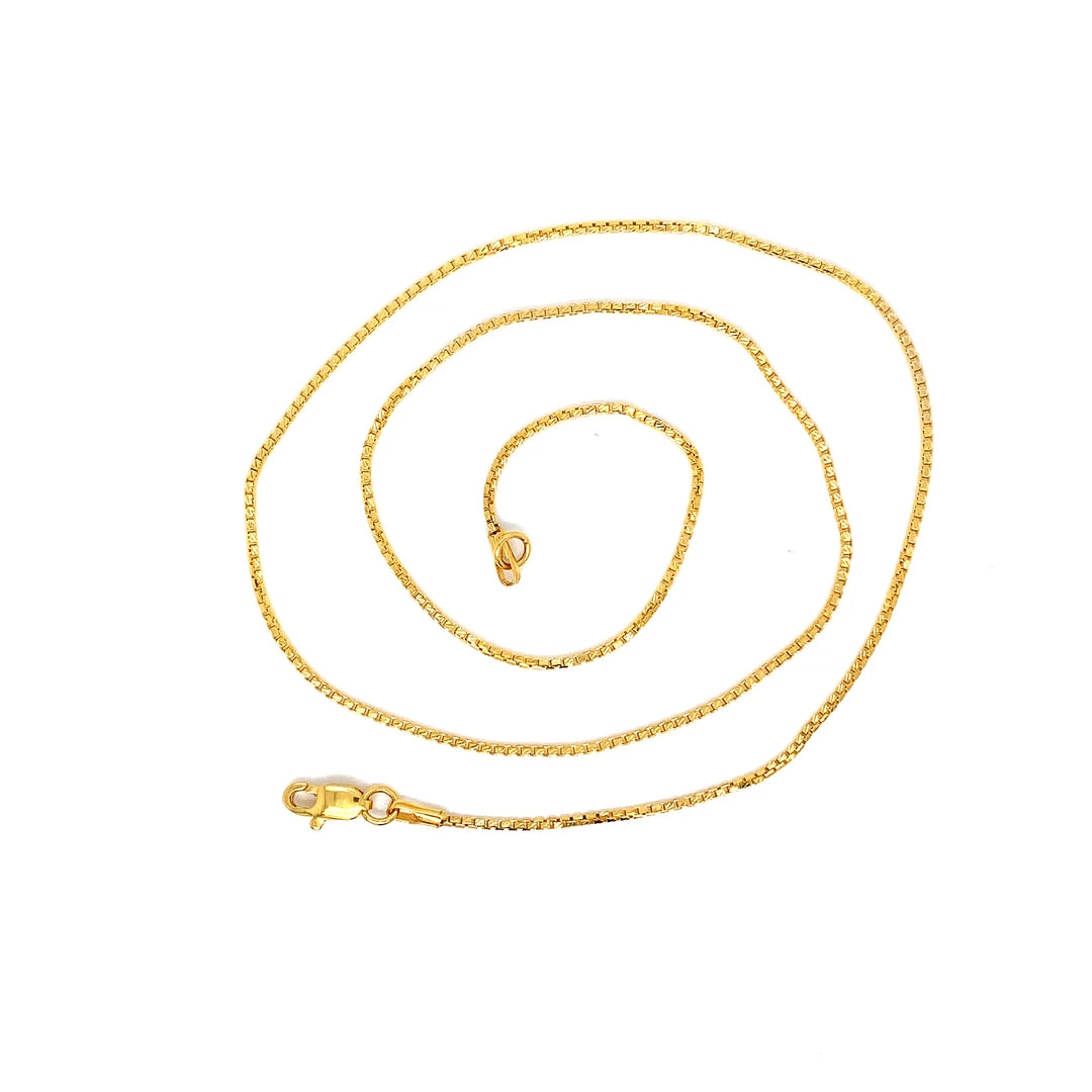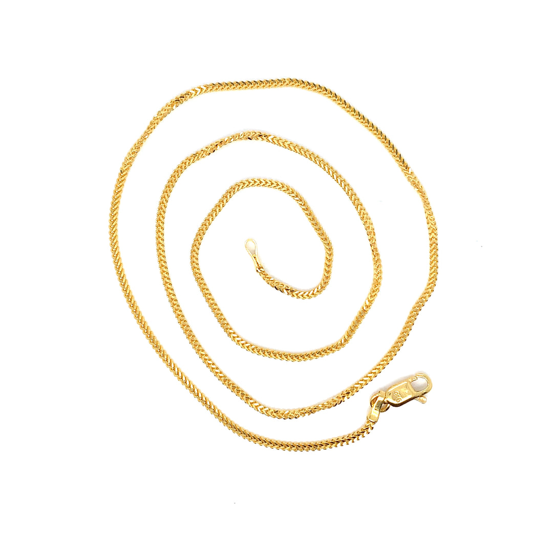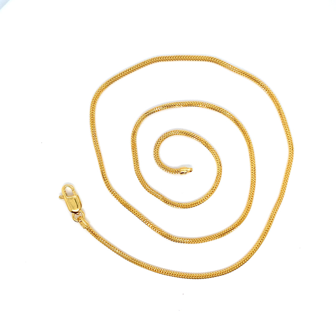 Elevate your elegance with our curated collection of gold chain masterpieces. Whether you’re seeking sleek minimalism for everyday wear or intricate patterns for special occasions, our 22K gold chains blend impeccable craftsmanship with timeless style. Handcrafted for enduring beauty and gleaming with authentic luster, each chain in the collection exemplifies sophistication, quality, and comfort, making it a piece to cherish for years to come. For a complete look, pair your chain with our stunning 22K gold pendants that perfectly complement the elegance of gold jewellery.