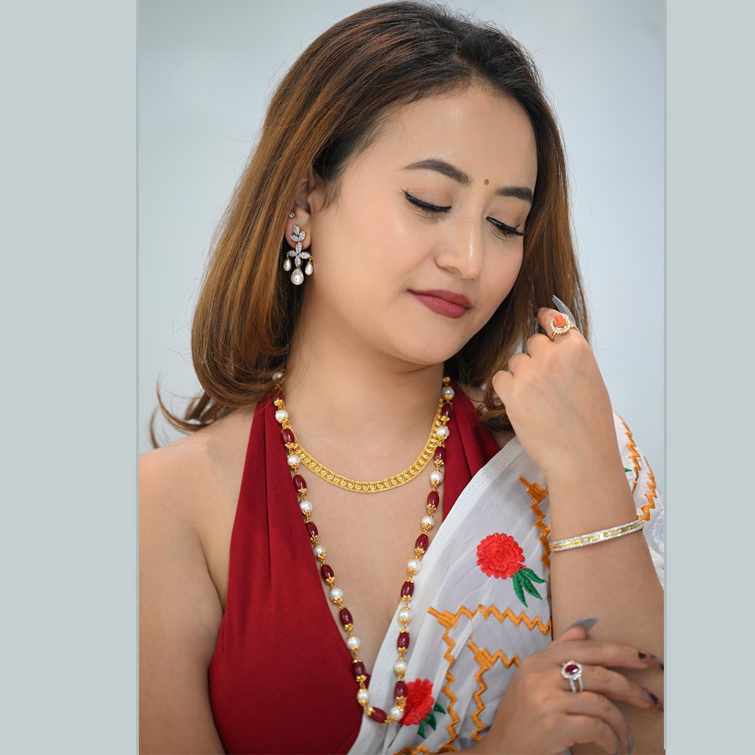 22K YG Women Mixed Semi Stone Necklace-1pc