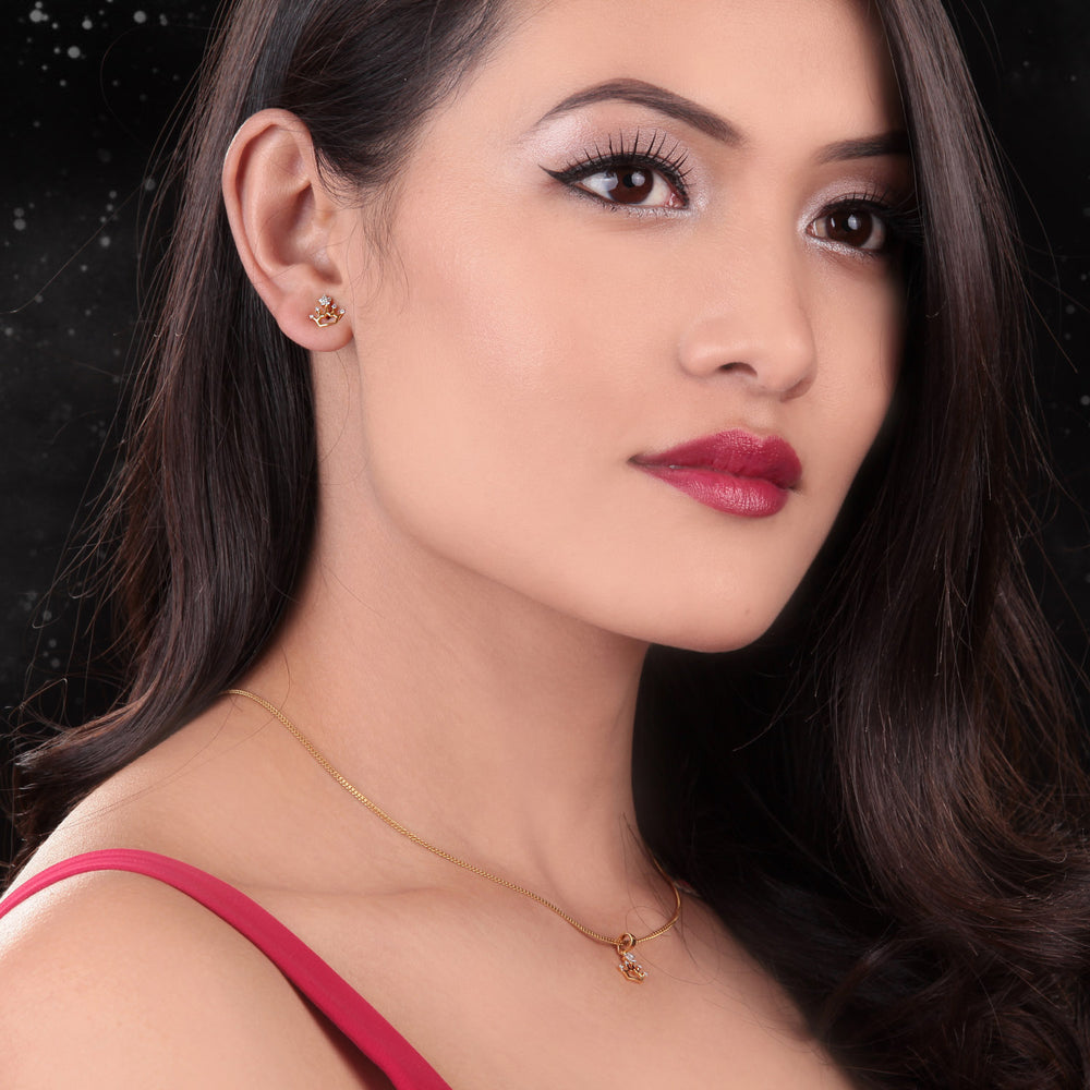 14K YG Crown Diamond Earring- 1pair