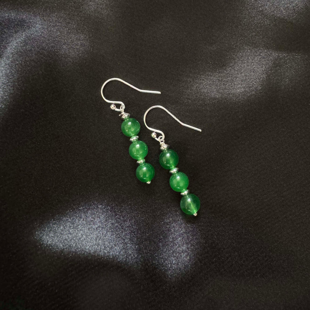 Sterling Silver Greenstone Hook Dangler Earring-1pair