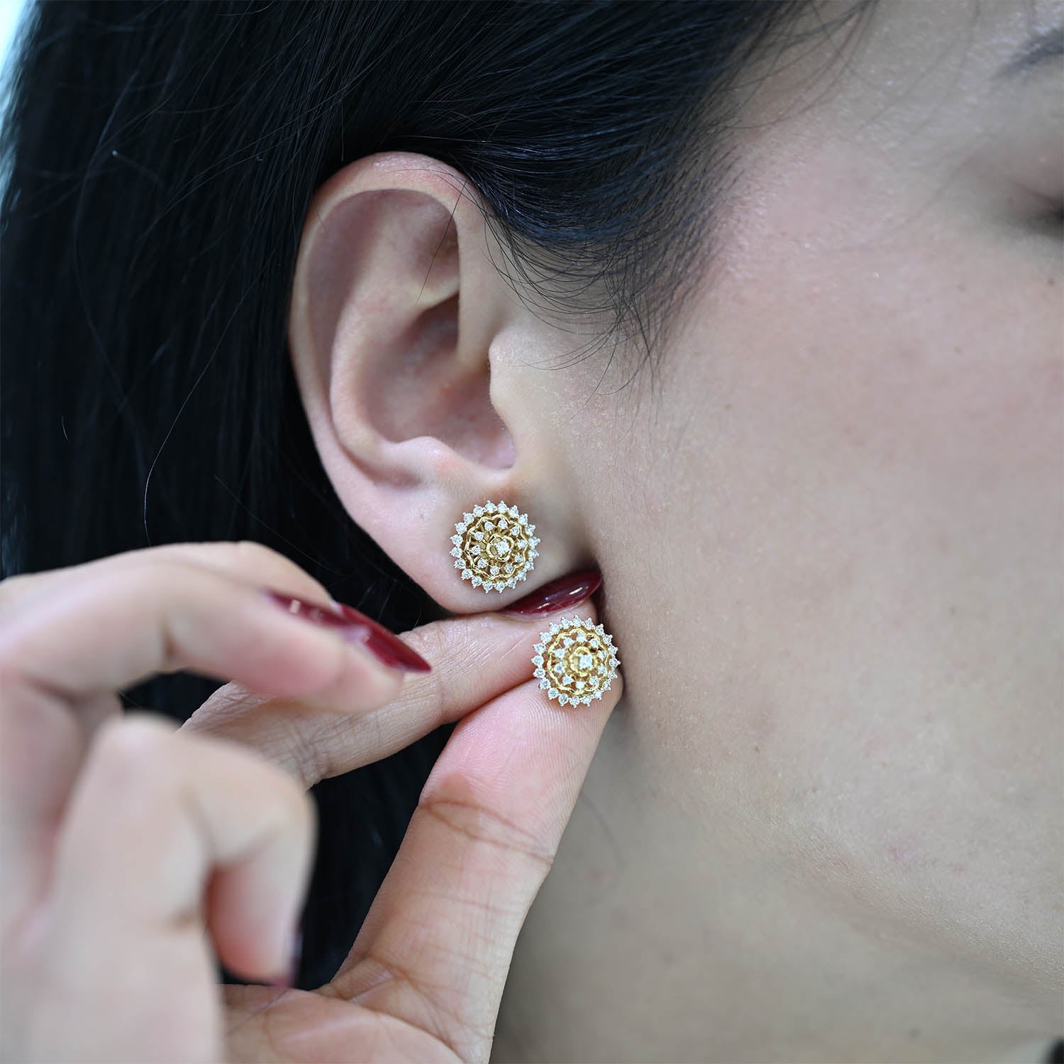18K YG Cluster Diamond Earring- 1pair