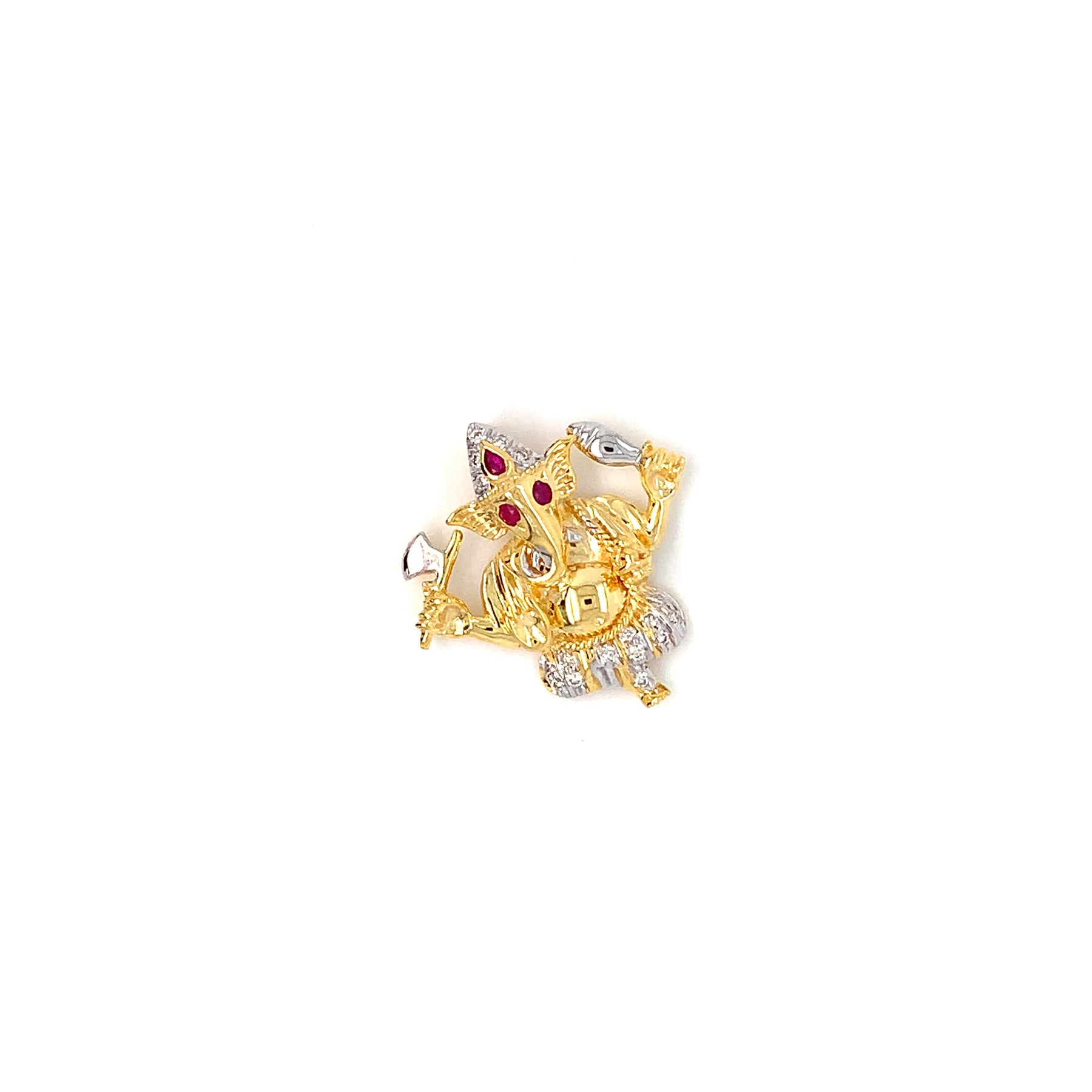 14K YG Full Ganesh Diamond, Ruby Pendant-1pc