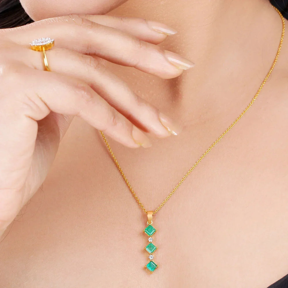18K YG Princess Cut Emerald Diamond Pendant - 1pc