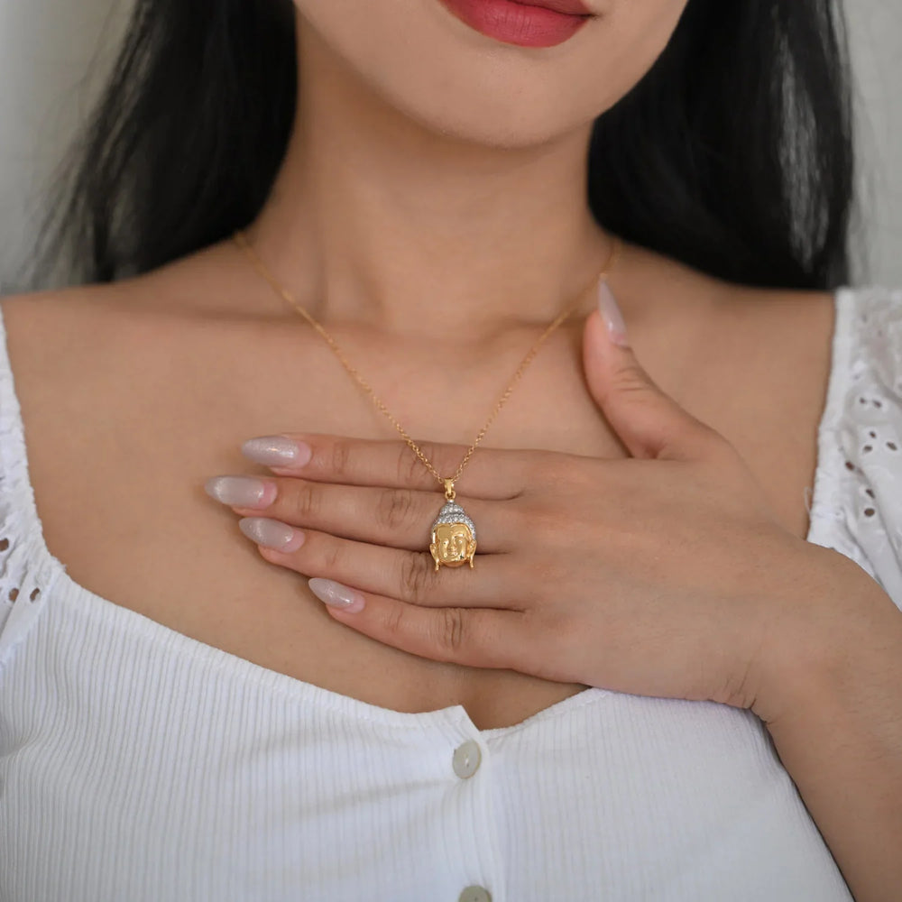 18K YG Unisex Buddha Head Diamond Pendant- 1pc