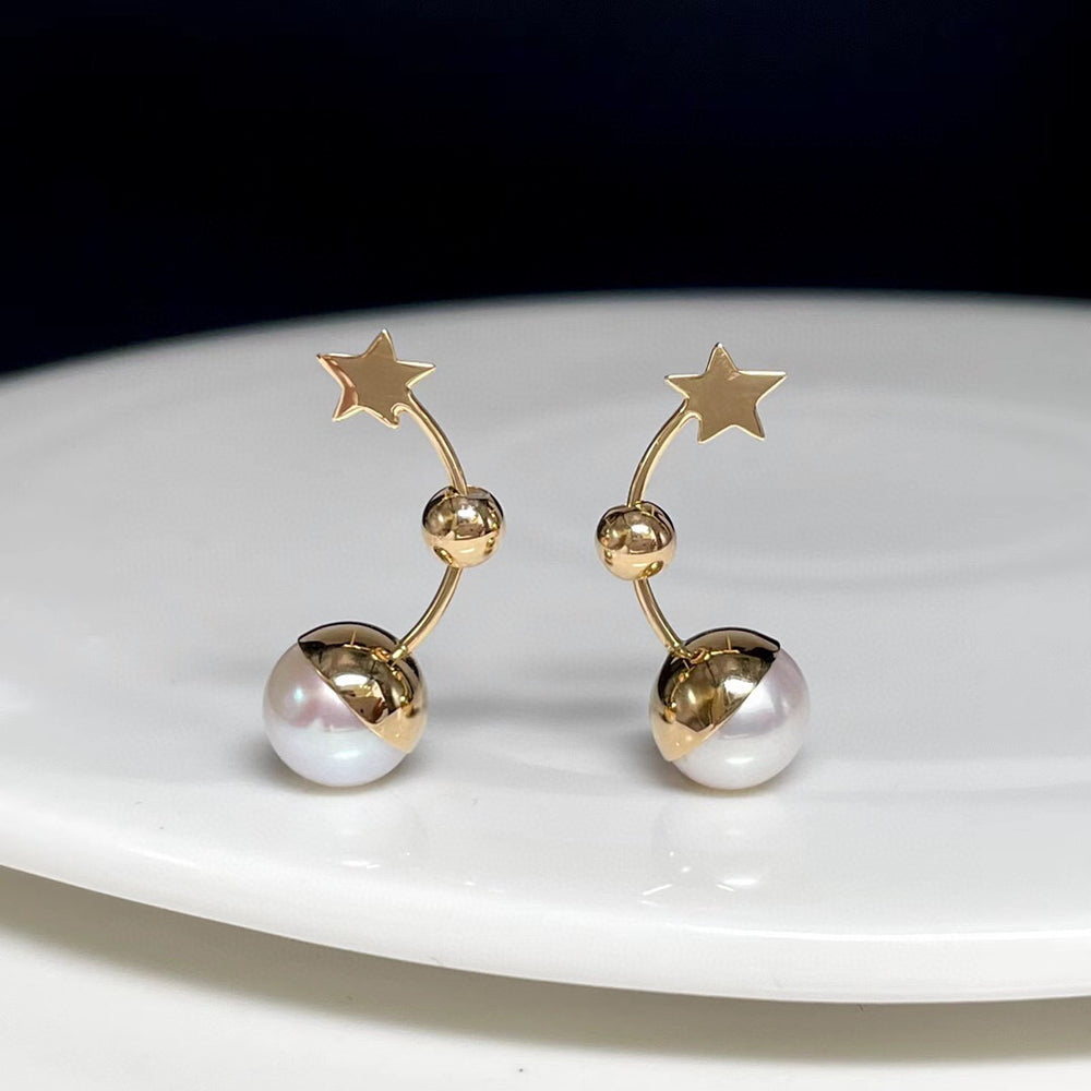 18K YG Earring with 7-7.5mm FWP white- 1pair