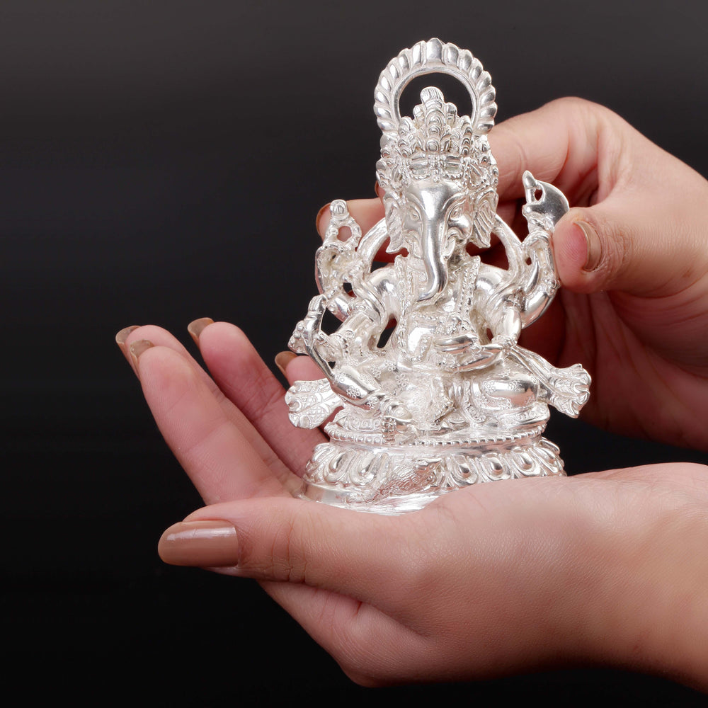 Carved Ganesh Silver Murti 21-23Tola-1pc
