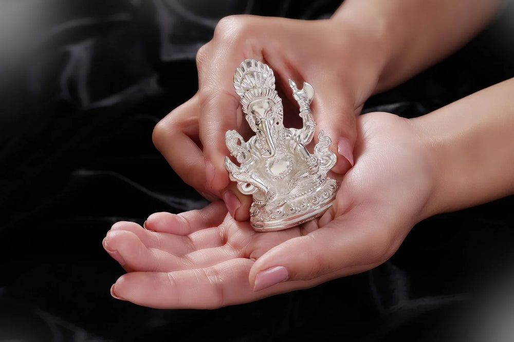 Carved Ganesh Silver Murti 9-11Tola-1pc