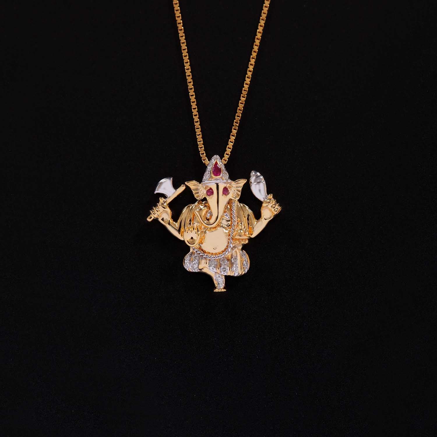 14K YG Full Ganesh Diamond, Ruby Pendant-1pc