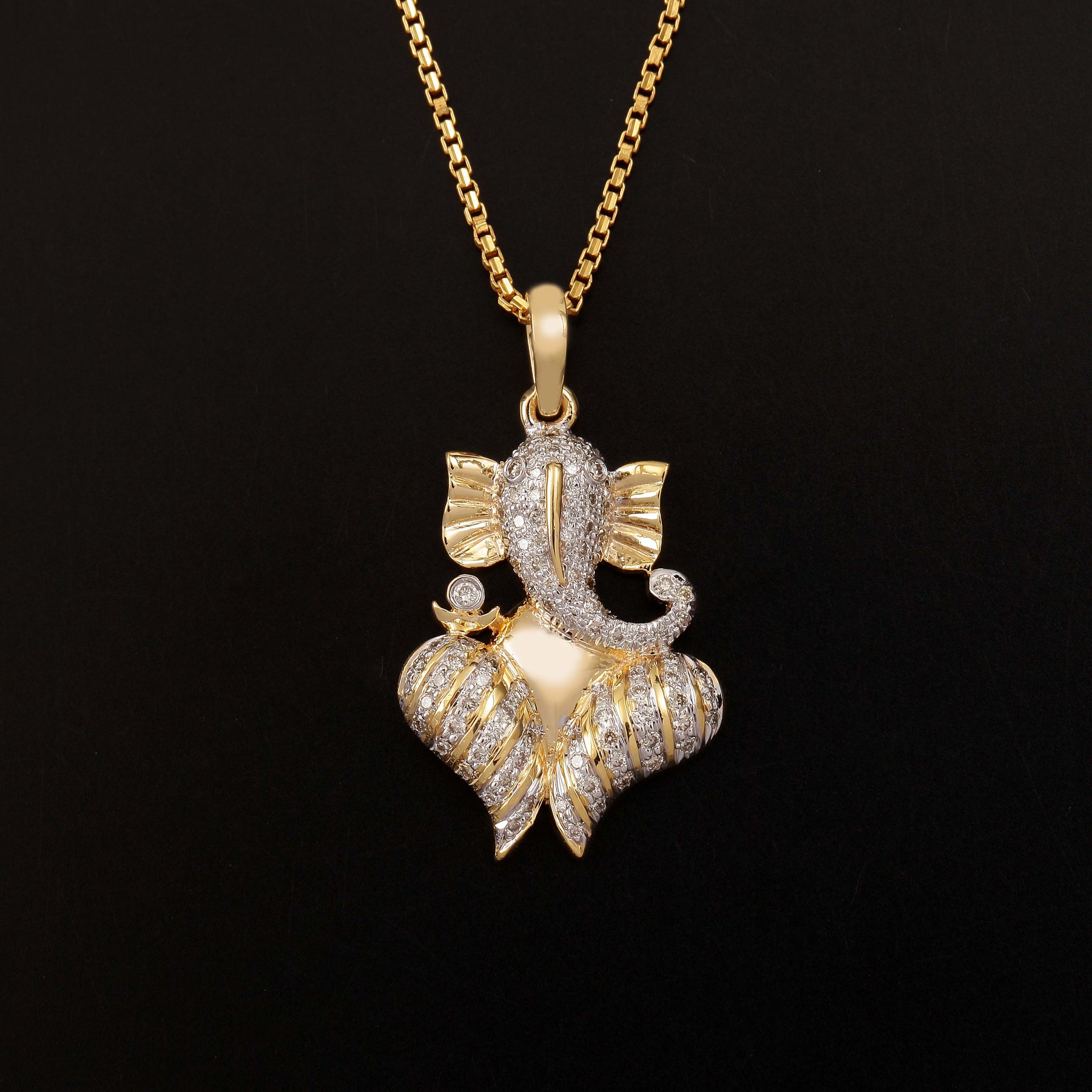 14K YG Ganesh Diamond Pendant-1pc
