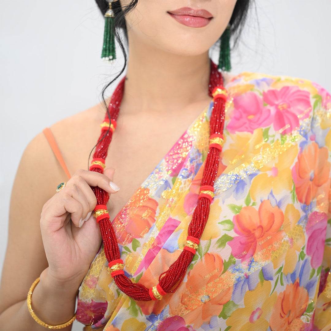 Embrace the timeless elegance of the Naugedi necklace, a cherished Nepali adornment featuring nine lustrous gold beads nestled within vibrant pote strands. Crafted to celebrate marital legacy and cultural essence, each piece is a harmonious blend of tradition and refined design, perfect for honoring rituals, heritage, and everyday grace. Elevate your ensemble further with our radiant 24K Earrings, designed to complement the Naugedi’s timeless charm with purity and sophistication.