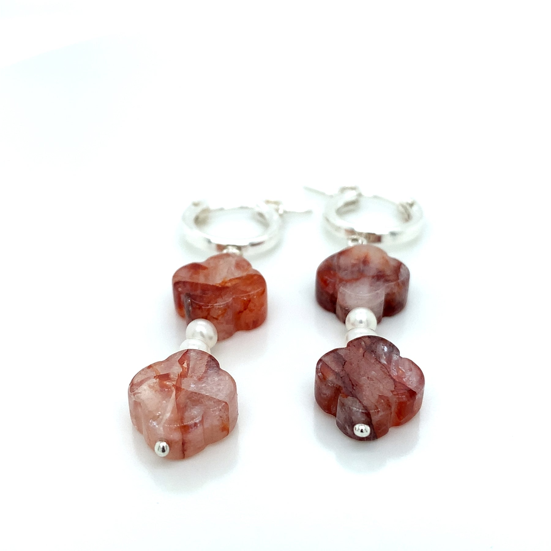 Sterling Silver Hinged Hoop Dangler Clover Hematoid Quartz and FWP Earring-1pair