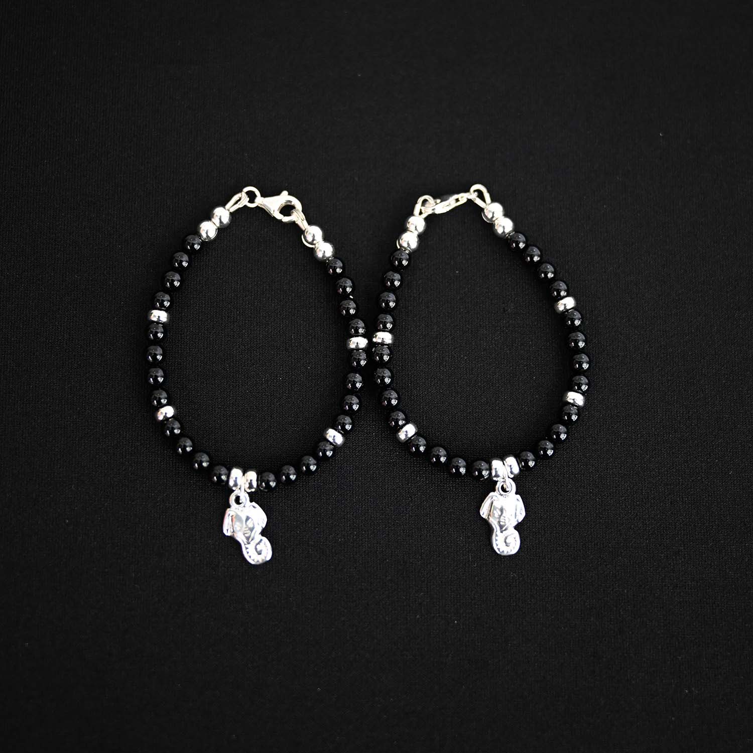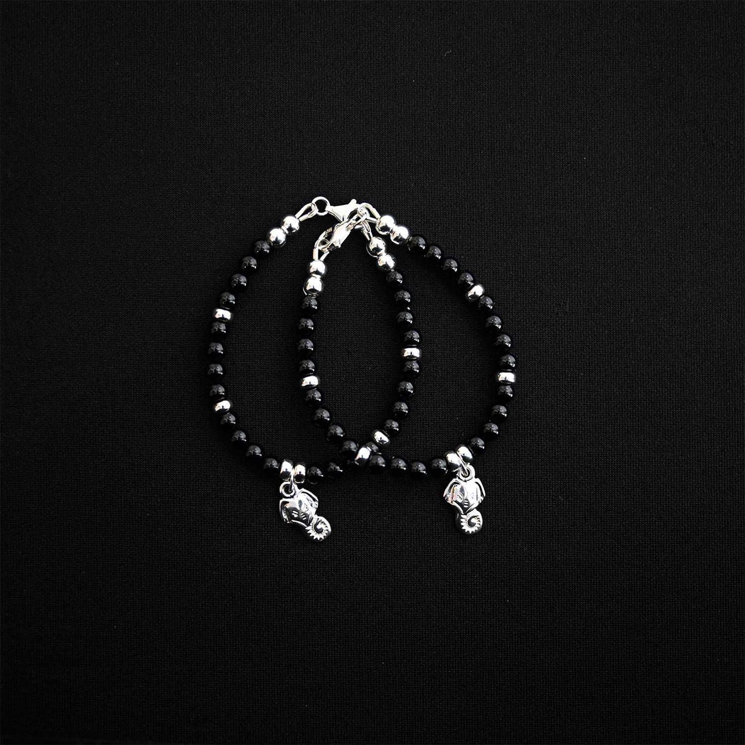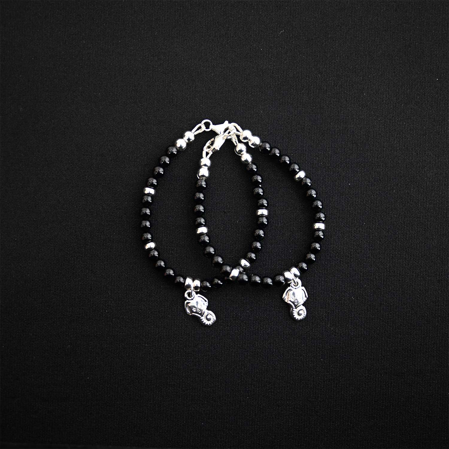 4mm Onyx Sterling Silver Ganesh Bracelet-1pair
