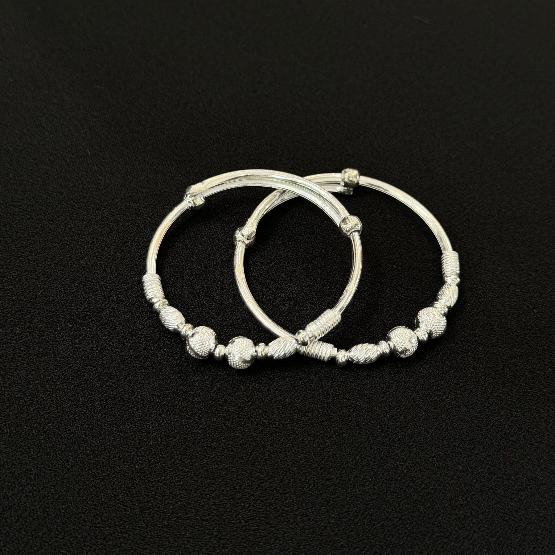 Sterling Silver Kids Adjustable Ball Bangle-1pair