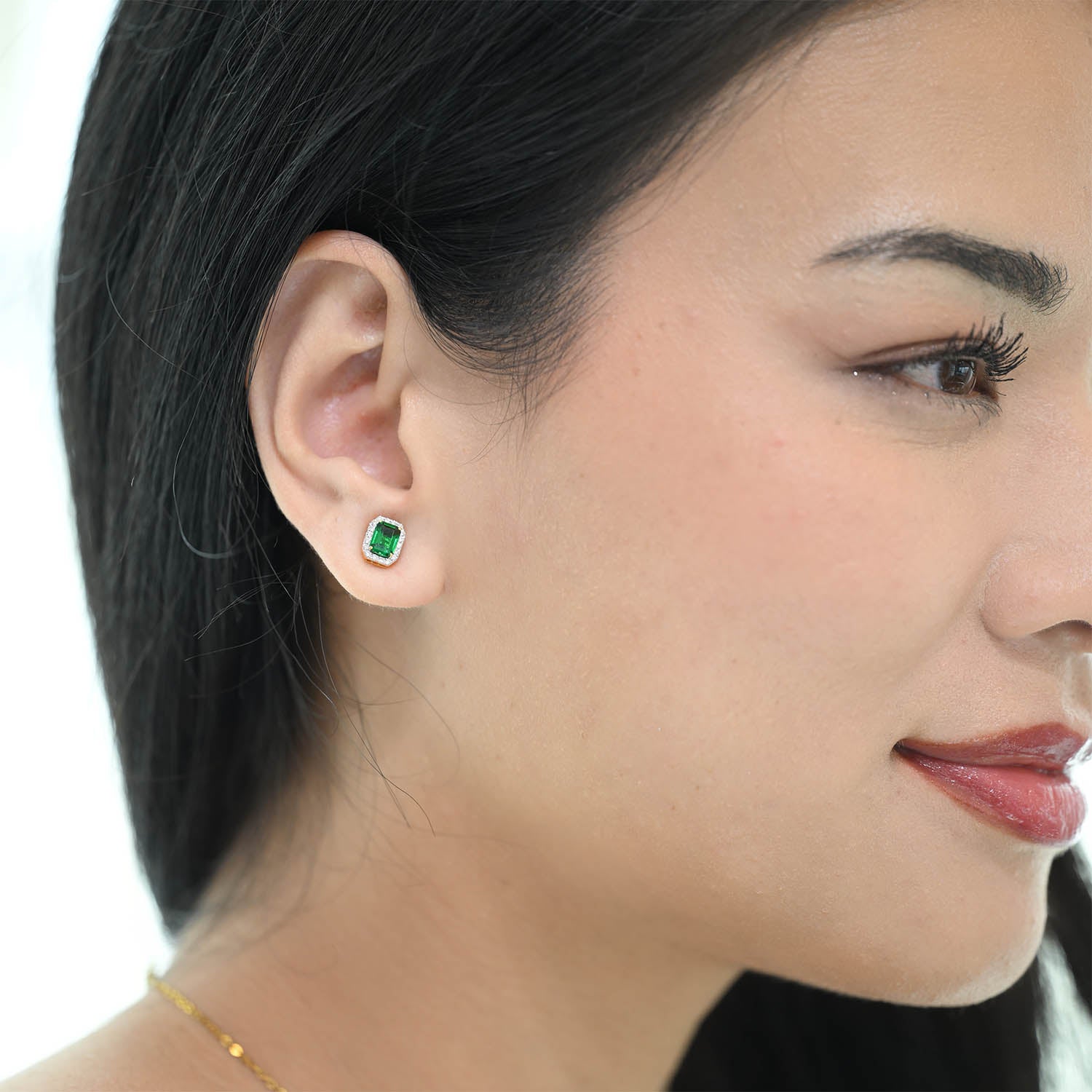 14K YG Cluster Diamond with Lab Created Emerald Earring- 1pair