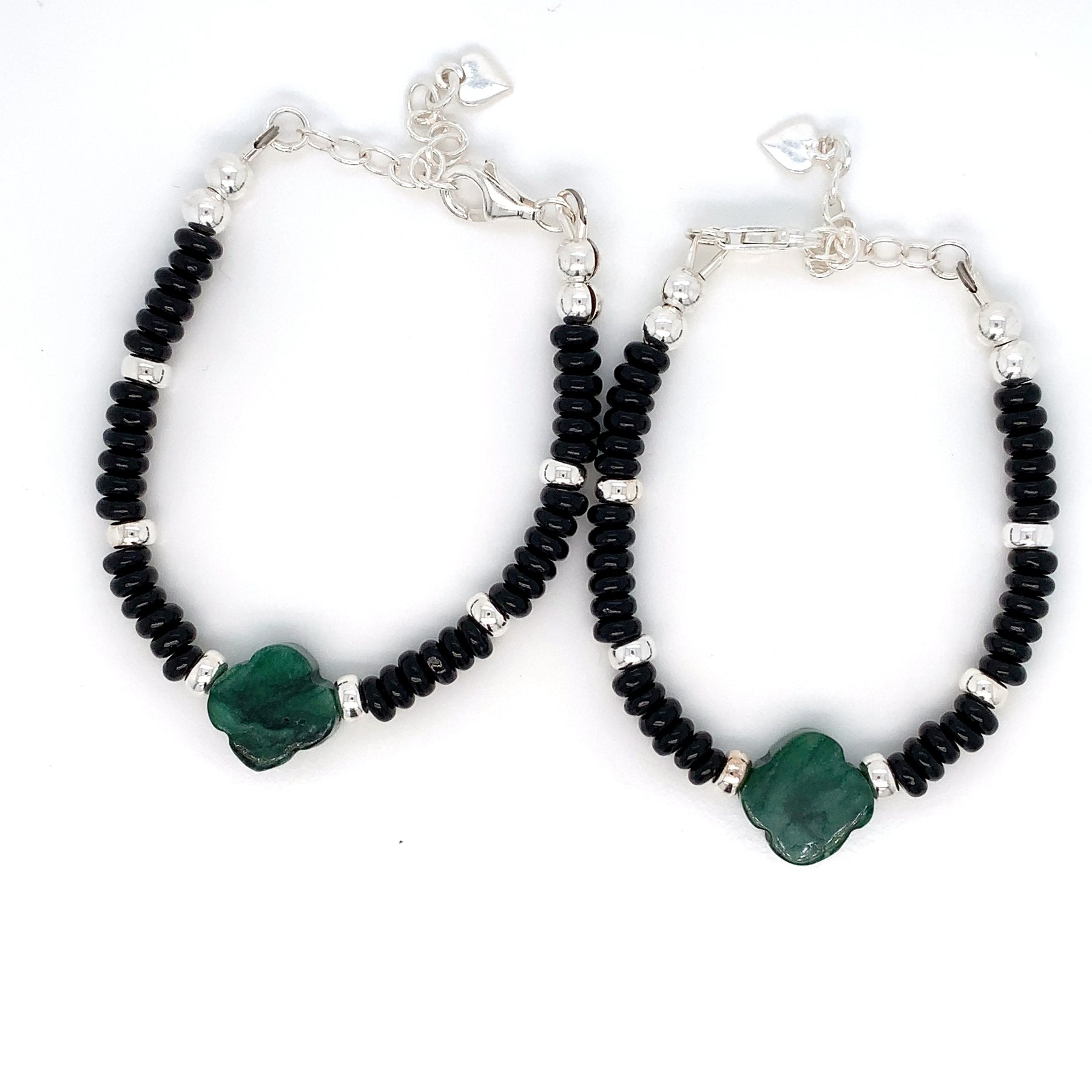 4mm Sterling Silver Green Lepidolite Clover Bracelet-1pair