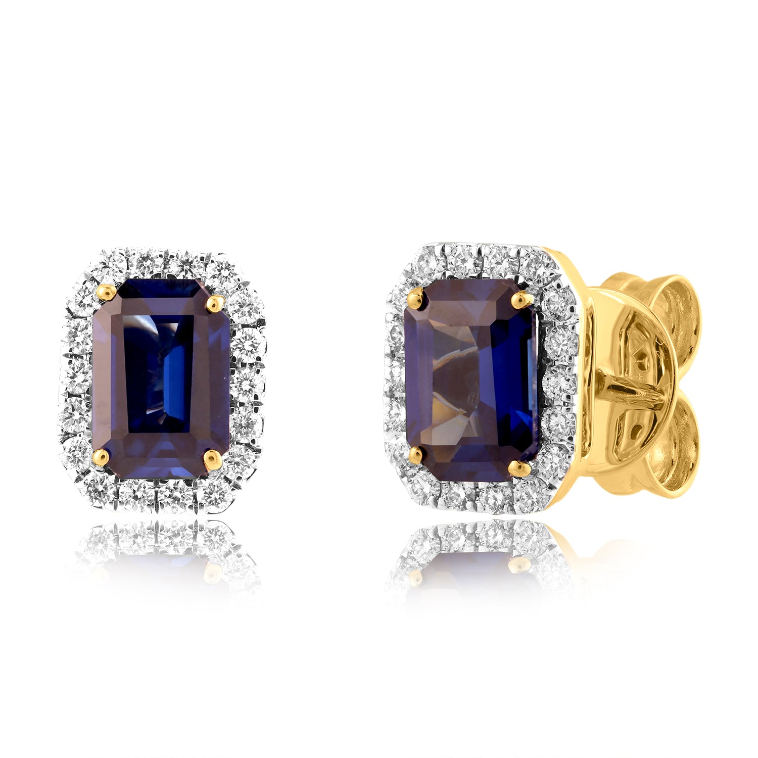 14K YG Cluster Diamond with Lab Created Sapphire Earring- 1pair